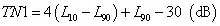 交通噪声指数TN1定义如下,其中L10 和L90 是在24小时户外测得的A声级的基础上统计得到的。